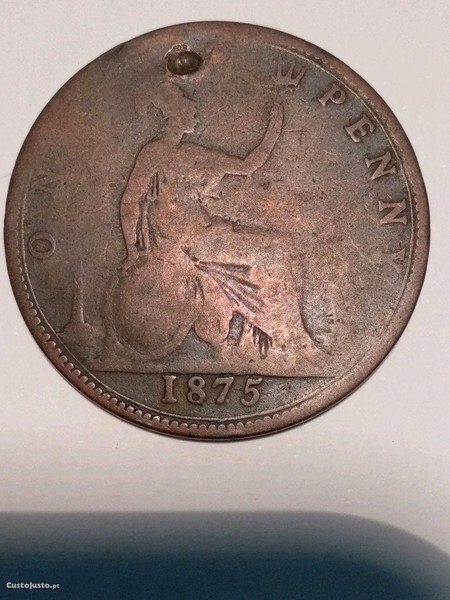 Moeda de 1 Penny 1875 de Inglaterra com desgaste.