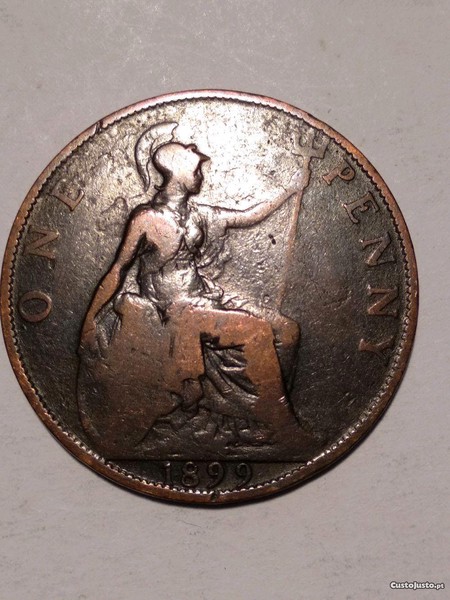 Moeda de 1 Penny 1899 Inglaterra da Rainha Victoria em bom estado de conservação.