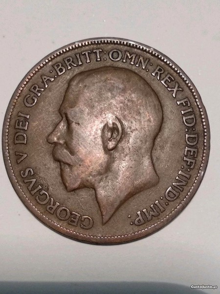 Moeda de 1 Penny 1920, do Rei George V de Inglaterra, em bom estado de conservação.