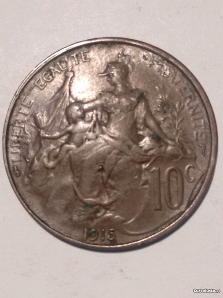 Moeda de 10 Cêntimos 1915 França em Bronze em muito bom estado de conservação. Moeda com 108 anos muito rara.
