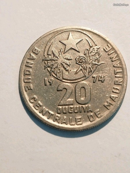 Moeda de 20 OUGUIYA 1974 da Mauritânia em muito bom estado de conservação.