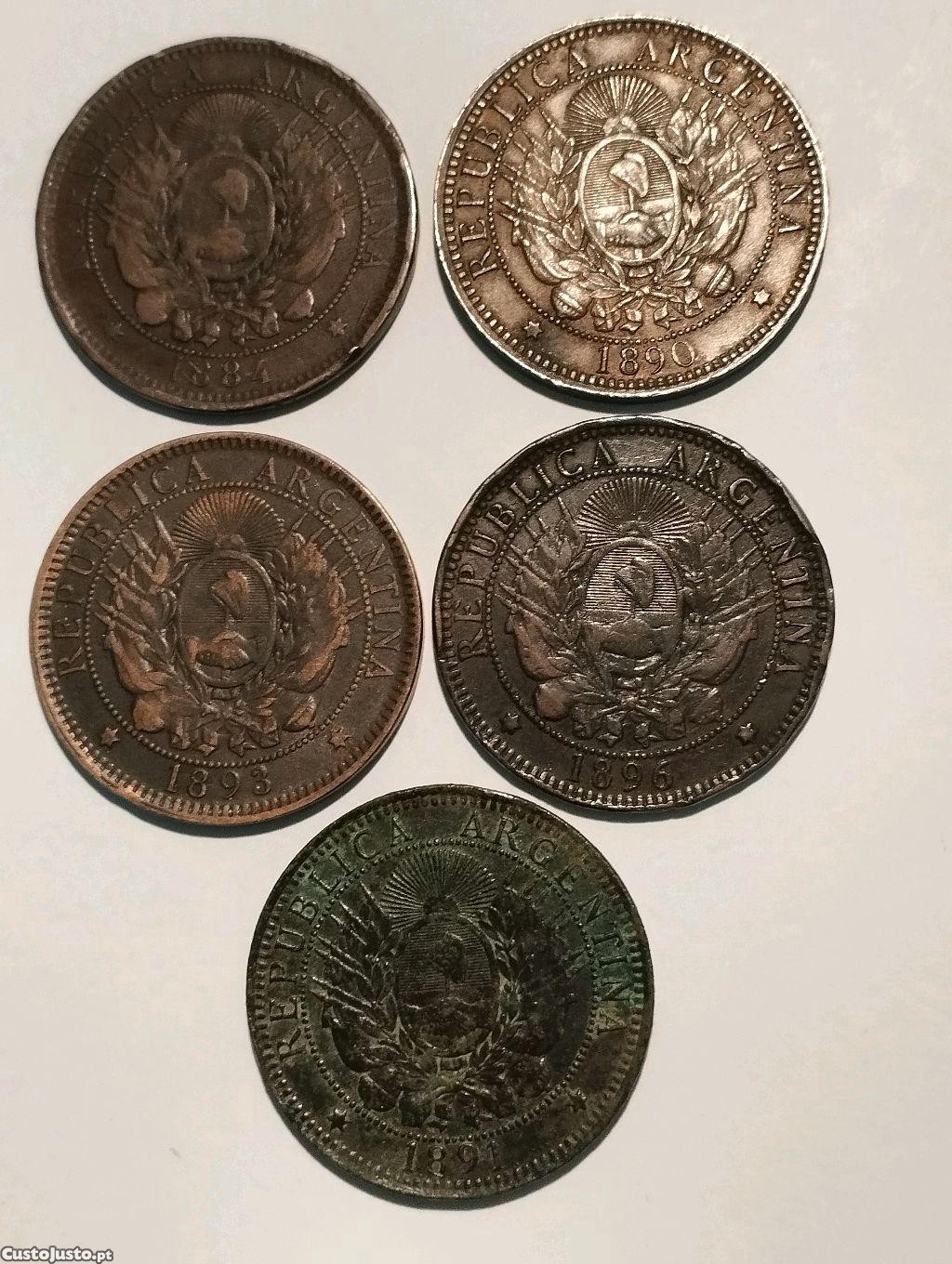 Moedas 2 centavos 1884, 1890, 1891, 1893 e 1896 Argentina