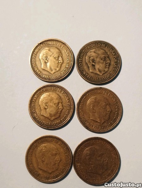 Moedas de 1 Peseta 1953 Espanha, em bom estado de conservação