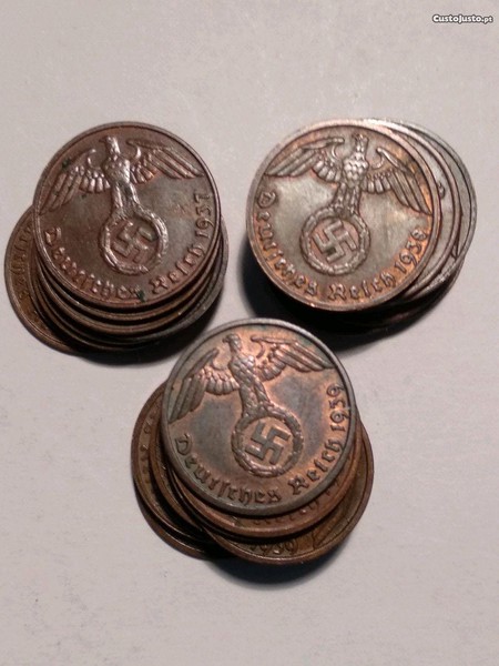 Preço: 3 €Moedas de 1 Reichspfennig 1937/38/39 c/ suástica nazi Alemanha