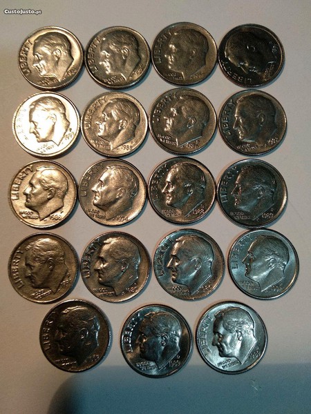 Moedas de 10 cêntimos "1 Dime" Estados Unidos da América a 1,00 euro cada.