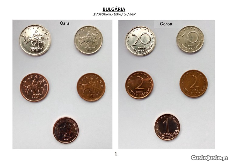 BULGÁRIA: 5 moedas LEV STOTINKI / LEVA / Lv / BGN, VER FOTO 1: