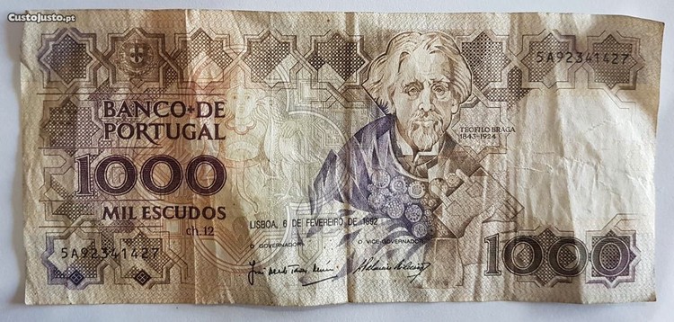 Vendo nota de 1000 Escudos de 1992 de Teófilo Braga.