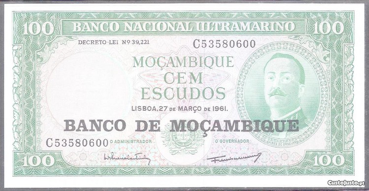 Preço: 3 €Nota Moçambique 100 Escudos 1961 Nunca Circulou