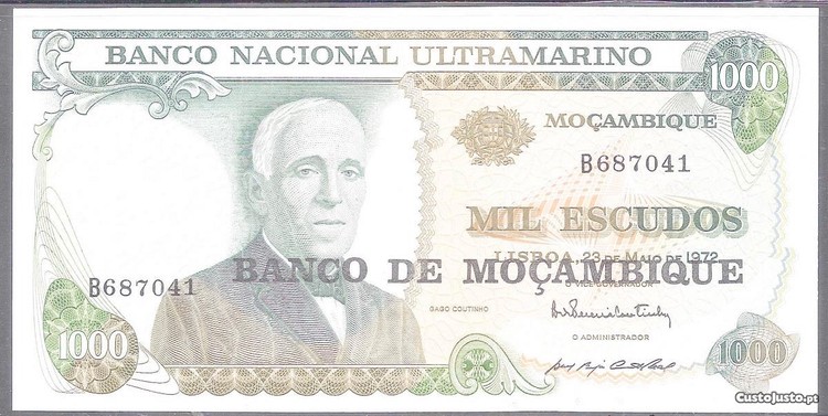 Preço: 15 €Nota Moçambique 1000 Escudos 1972 Nunca Circulou