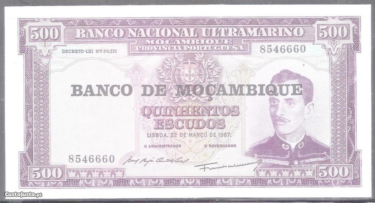1 Nota Moçambique Quinhentos Escudos 1967 Nunca circulou, veja foto para verificar o excelente estado de conservação.