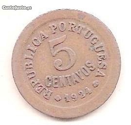 Preço: 5 €Portugal Moeda 5 Centavos 1924