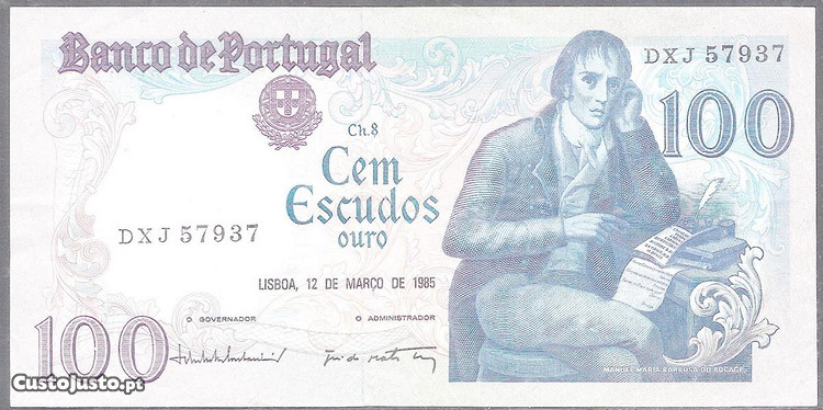 1 Nota Cem Escudos 1985 - Ch.8 DXJ 57937, veja foto para verificar o excelente estado de conservação.