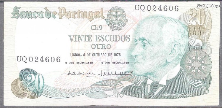 1 Nota Vinte Escudos 1978 - Ch.9 - UQ024606, veja foto para verificar o excelente estado de conservação.