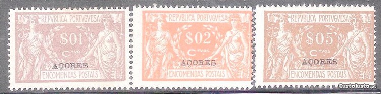 Selo Afinsa # 1-2-3 Encomendas Postais Açores,