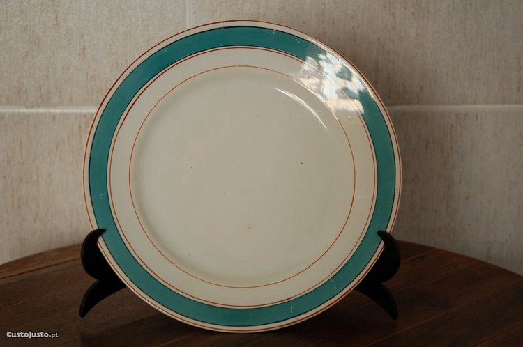Prato raro raso da Real fábrica de Sacavém com coroa gravada na pasta (1886 até 1902) em muito bom estado com sinais de uso.