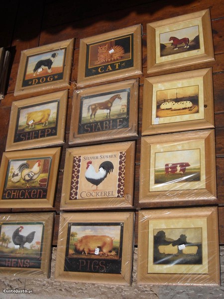Quadros antigos vintage rusticos gravuras animais de quinta NOVO