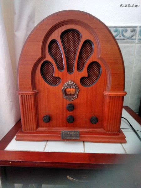 INTRON, RÁDIO - Modelo MA908, caixa em madeira folheada, com placa indentificativa "Intron Antique Collection", frequência AM-FM, potência 10W. Dim: 33x30x19cm.