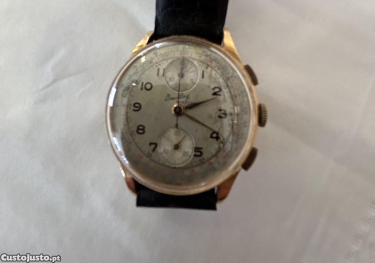 Antigo relógio Breitling 1936 em caixa de ouro 18k contrastado, com máquina Vénus 175 Cronografo a funcionar perfeitamente