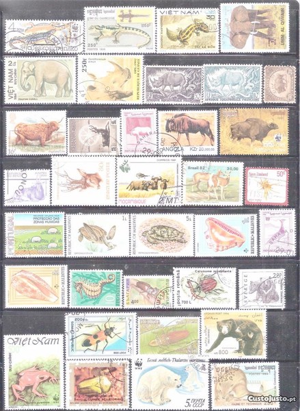 Sao mais de 140 selos de Animais Diversos em condições de Coleccionar. Agradecido pela visita! Por favor veja todos os meus artigos, estou certo que vai encontrar algo de qualidade e a preços ridiculamente baixos!!! Bons negócios