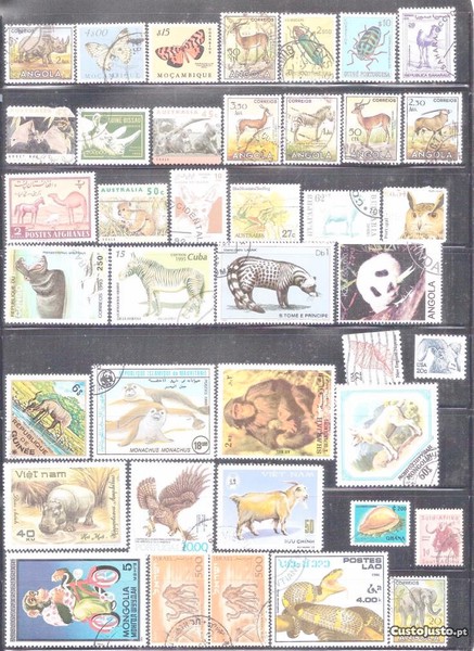 Sao mais de 140 selos Tema Animais Diversos em condições de Coleccionar. Agradecido pela visita! Por favor veja todos os meus artigos, estou certo que vai encontrar algo de qualidade e a preços ridiculamente baixos!!! Bons negócios