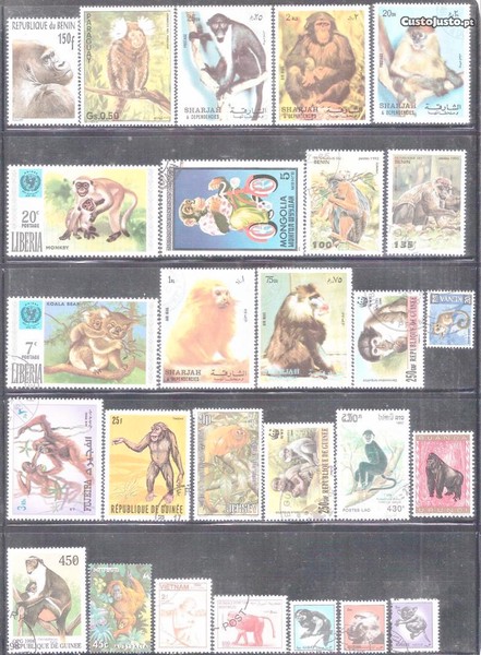 Sao mais de 40 selos de Macacos em condições de Coleccionar.