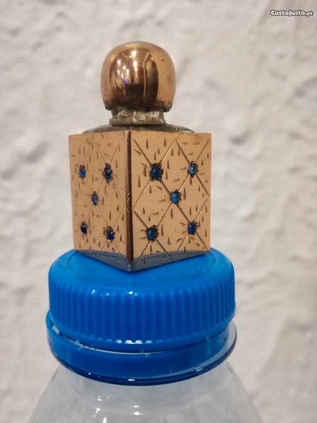 Preço: 40 €Snuff Bottle-Frasco Perfume Miniatura em Vidro Montado em Metal c/ Cristais Azuis