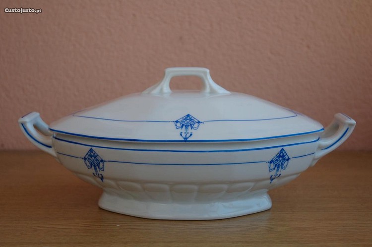 Terrina pequena e antiga da fábrica Empreza Electro Ceramica V.N.Gaia Candal em muito bom estado.Dimensões: 32,5 cm x 19 cm.Altura : 14 cm.Peso : 1,2 Kg.