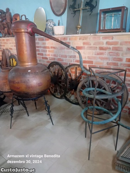 Um alambique em cobre antigo completo e em bom estado. Deve levar a volta de 100lts