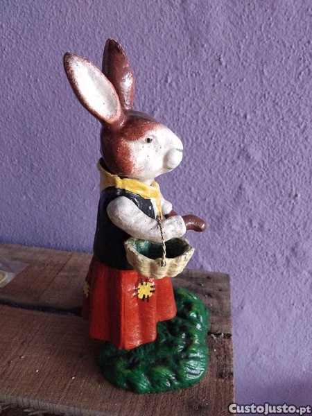 uma coelha em ferro fundido decorativa, bom estado e mede 23 cm de altura, 11 cm de comprimento e 9 cm de largura
