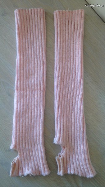 Caneleiras cor rosa claro ("rosa bebé"), acrílico, para criança indicadas para a prática de ballet (possui orifício para encaixe do calcanhar)