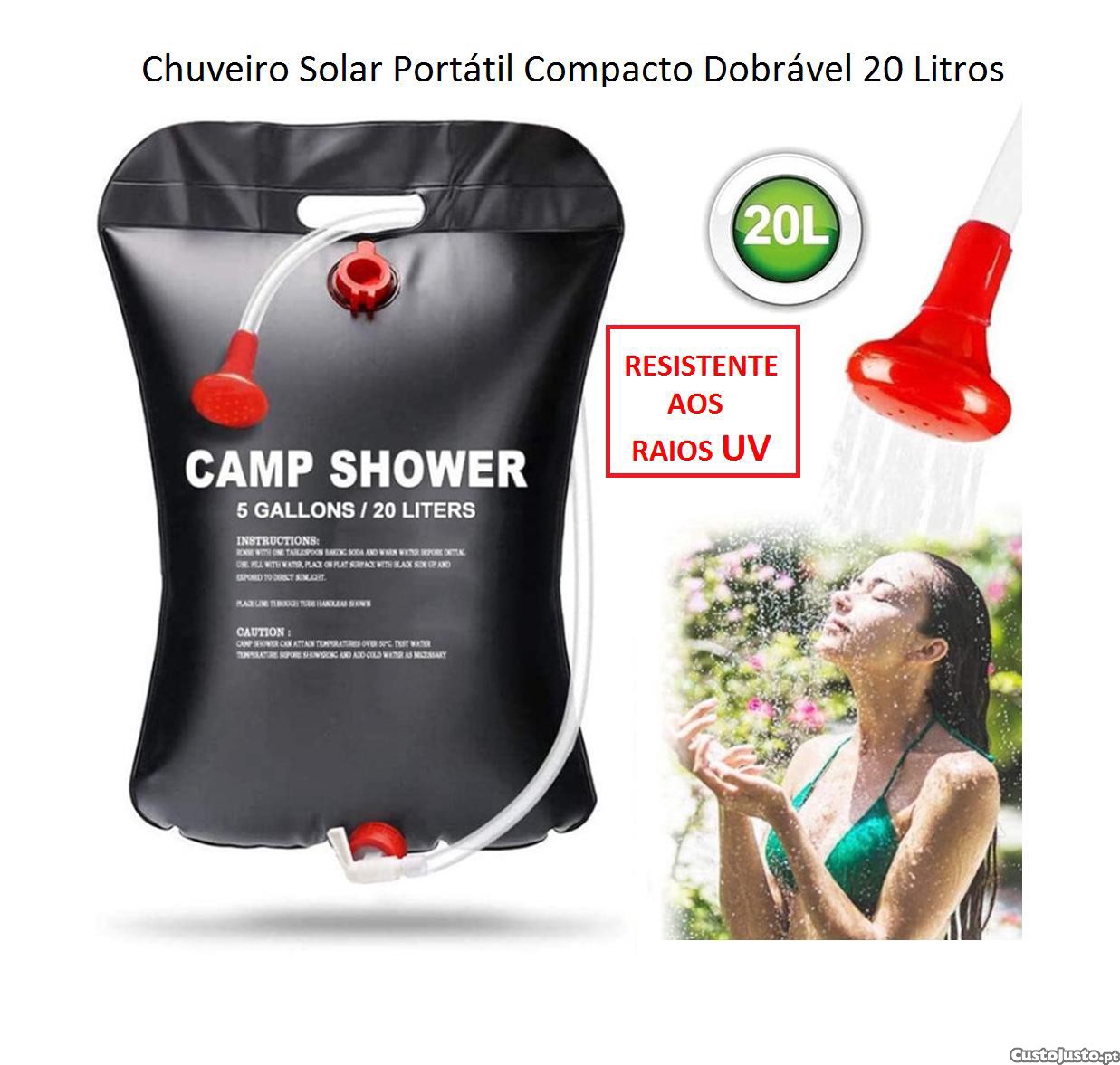 Preço: 19 €Chuveiro Solar Portátil Compacto 20 Litros