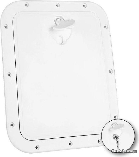 Esta escotilha com Fecho existe em branco e tem de comprimento 35,6cm e de largra 30,6cm.