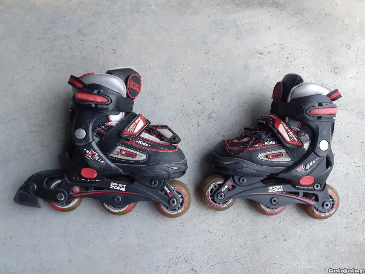 Preço: 20 €Par de Patins em linha (tamanho 27-30) + kit de proteção Bone Shieldz
