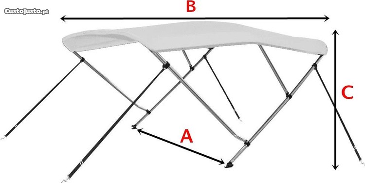 A Nautifish apresenta o Toldo em alumínio 200 de 3 arcos com as medidas: