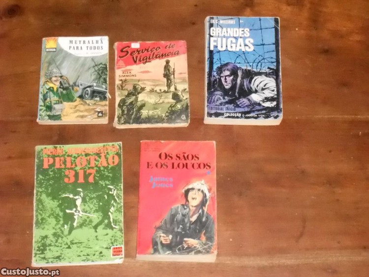 Diversos livros antigos cuja acção se passa em cenários de guerra de várias épocas
