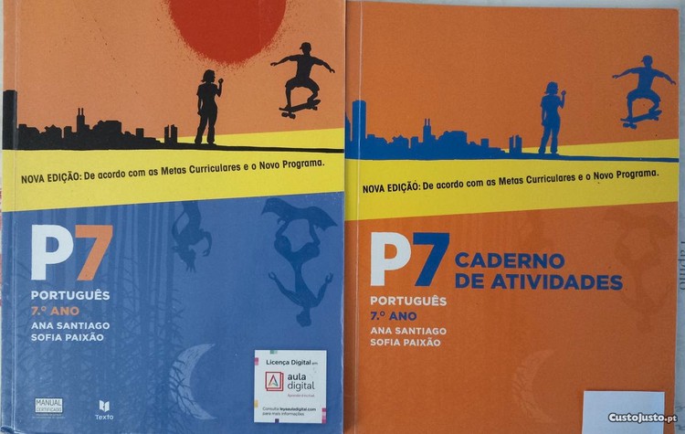 Manual "P7" (5 euros) + Caderno de atividades (3 euros) para a disciplina de Português 7 ano.