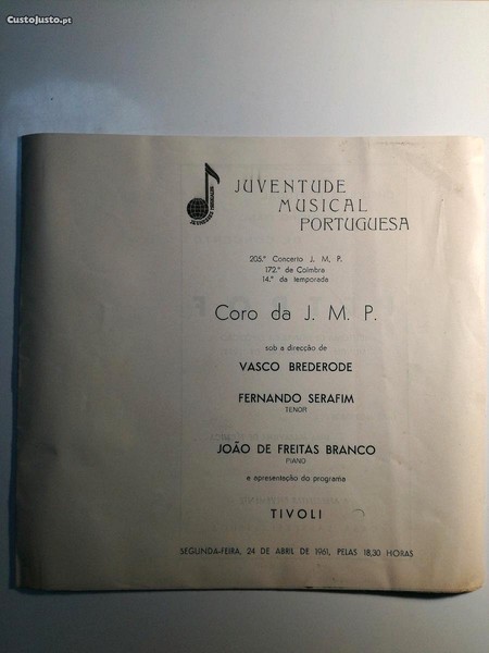 Preço: 8 €Programa Juventude Musical Portuguesa Tivoli 1961