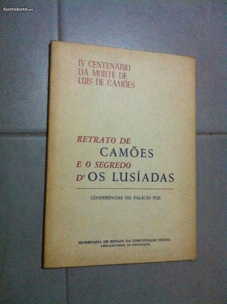 Livro "Retrato de Camões e o Segredo d'Os Lusíadas". Conferências no Palácio Foz. Edição comemorativa do IV Centenário da morte de Luís de Camões.