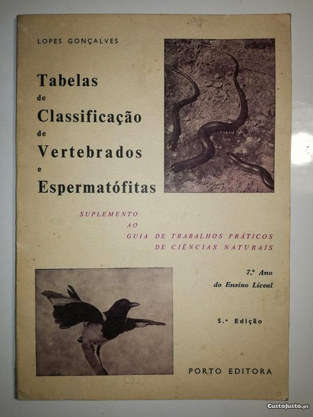 Preço: 5 €Tabela de Classificados de Vertebrados e Esper...