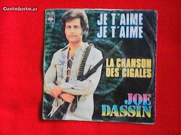 Disco vinil single de «Joe Dassin com as músicas Je T'Aime, Je T'Aime e La Chanson des Cigales.
