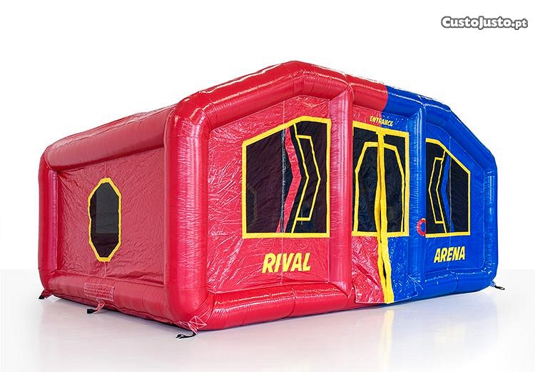A CB Insuflaveis tem disponivel para aluguer esta arena insuflável interactiva Rival, o serviço inclui insuflável, jogo interactivo de competição, protecções faciais e pistolas Nerf.