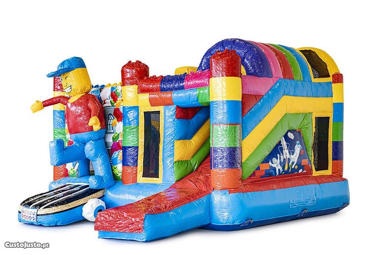 A CB Insuflaveis tem disponivel para aluguer este insuflável multiplay com o tema LEGOS, com escorrega, obstáculos e tunel no interior. Muito giro e divertido para os mais pequenos.