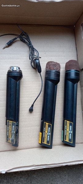 Vendo conjunto de microfones sem fio Mac mah para peças. Todos funcionam mas ja nao tenho o recetor. Posso vender separado. O de cabeça já não tem o recetor.Posso enviar.
