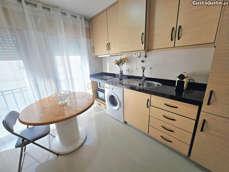 O apartamento dispõe de um quarto, uma casa de banho, uma cozinha e sala equipada .
