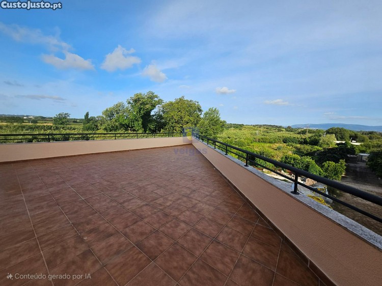 No piso superior temos 3 quartos, sendo um deles suíte, uma segunda sala que poderá ser transformada em quarto ou 2 espaços independentes devido à sua área e distribuição de espaço, acesso ao terraço privativo de 80m2 com vista para a Serra de Montejunto e para os espaços verdes do condomínio.