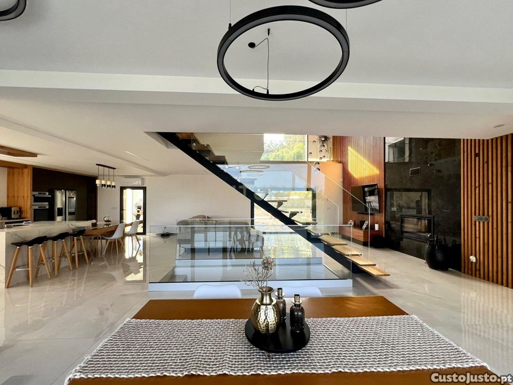 Com 4 quartos e 4 casas de banho, esta casa oferece um layout inteligente e funcional. A cozinha independente está totalmente equipada, enquanto a sala de estar com lareira proporciona um ambiente acolhedor. Desfrute de um pátio encantador, um jardim bem cuidado e um espaço de armazenamento generoso, ideal para todas as suas necessidades.