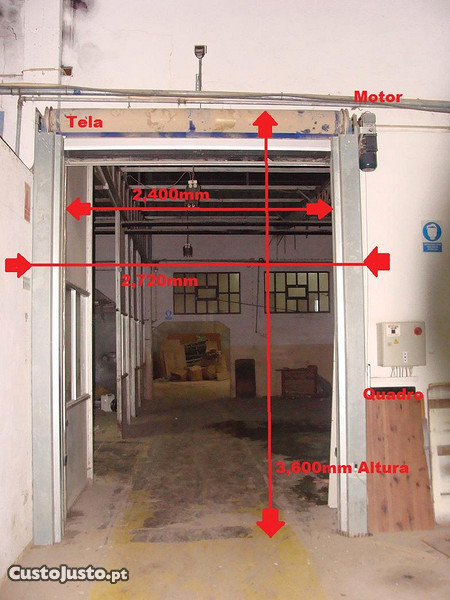 Portão de lona usado, completo c/ motor e quadro, pronto a instalar.