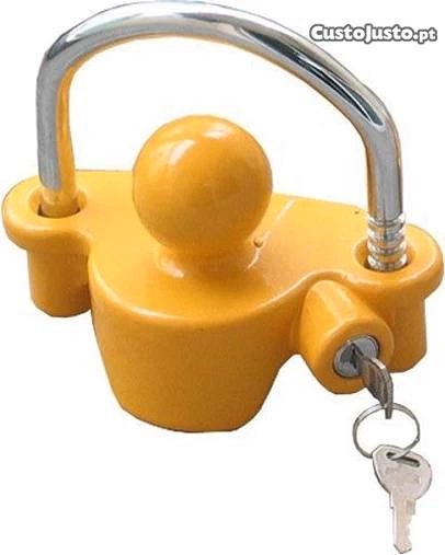 Dispositivo de segurança anti-roubo universal para reboque. Engate universal com bola de reboque na cor amarelo.