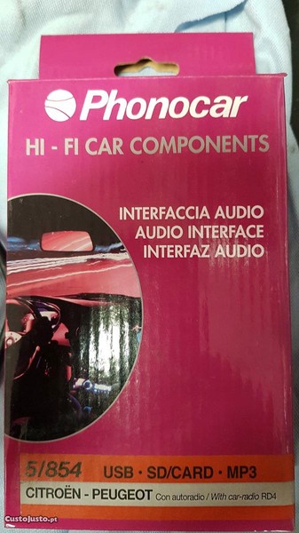 Interface de audio Phonocar 5/854 para viaturas Peugeot /Citroen equipados com radio original RD4. Entrada USB, SD/Card e Aux audio MP3