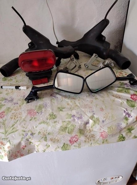 piscas, espelhos, condutas de ar, estribos,feixo de banco, união de laterais traseira, farolim, e vario material